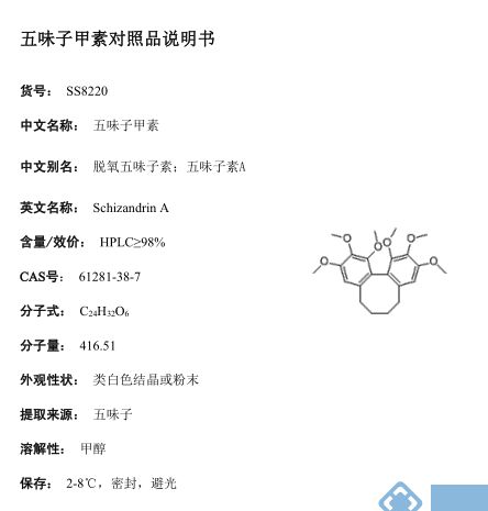五味子甲素标准品-常用生化试剂-试剂-生物在线
